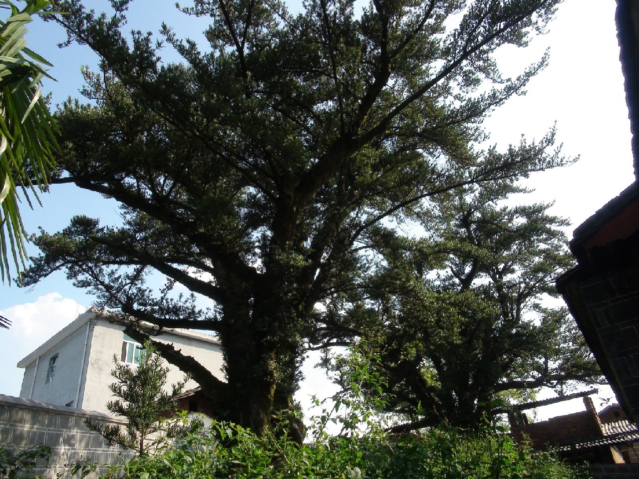 先雕公祠堂罗汉松之王:先雕公祠约建于乾隆年间,祖祠建成之后,先雕从福州买回两株罗汉松种下以供观赏,故这两株古树已有200多年历史了。这两棵罗汉松左右对称,株距10米,现在这两棵罗汉松已枝叶相连,形成合拱。树干比二人合抱还大,那枝叶一束束向上伸展,显示了它奋发向上的生命力。