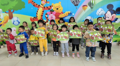 绘本欣赏结束后进入手工环节,亲子家庭以“给刺猬贴苹果”为主题进行黏贴画制作。活动过程中,孩子们发挥动手能力,在家长协助下裁剪、粘贴,共同完成作品。
