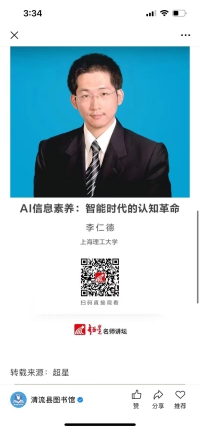2025年清流县图书馆推出清图线上讲座系列,与365位名师相约每周30分钟一讲座,把你的思维带到未曾去过的地方。8月19日推出 第13期 李仁德 AI信息素养:智能时代的认知革命,本期主讲人李仁德,博士,上海理工大学图书馆副研究馆员,管理科学与工程硕士研究生导师。主讲内容:信息洪流汹涌而来,真假难辨,无所适从?AI工具层出不穷,却不知如何高效利用,甚至担心被误导?本场讲座聚焦AI信息素养提升,深入探讨智能时代信息处理方式变革,剖析AI技术原理、应用与挑战。这不仅仅是一场技术讲座,更是一次关乎你未来思维方式和信息处理能力的“认知革命”!