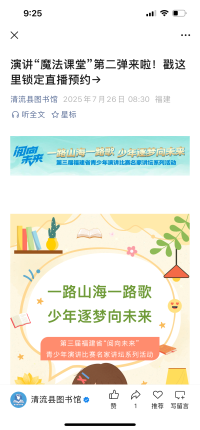 为进一步提升青少年语言表达与演讲能力,丰富暑期文化生活,7月26日下午,第三届福建省“阅向未来”青少年演讲比赛名家讲坛系列活动——演讲“魔法课堂”第二弹来啦!
