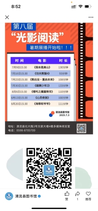 第八届“光影阅读”暑期电影展播活动开始啦!