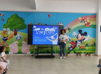 活动伊始,指导老师为小朋友们推荐了《爸爸岛》、《爸爸的大手》等一系列有关爸爸的精彩绘本,为孩子们打开了对父爱认知的新视野。随后,指导老师带领大家一起做亲子操,现场瞬间变成欢乐的海洋。在欢快的儿歌声中,爸爸和孩子们一起大手牵小手旋转、拥抱,亲子间的默契与亲密不断升温,将活动氛围推向高潮。