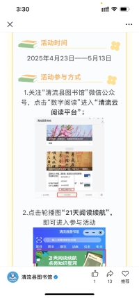 清流县图书馆举办“21 天阅读续航,点亮知识星河”阅读打卡活动