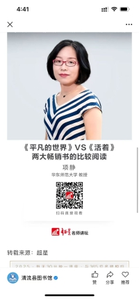 清图线上讲座|第7期 项静 《平凡的世界》VS《活着》:两大畅销书的比较阅读