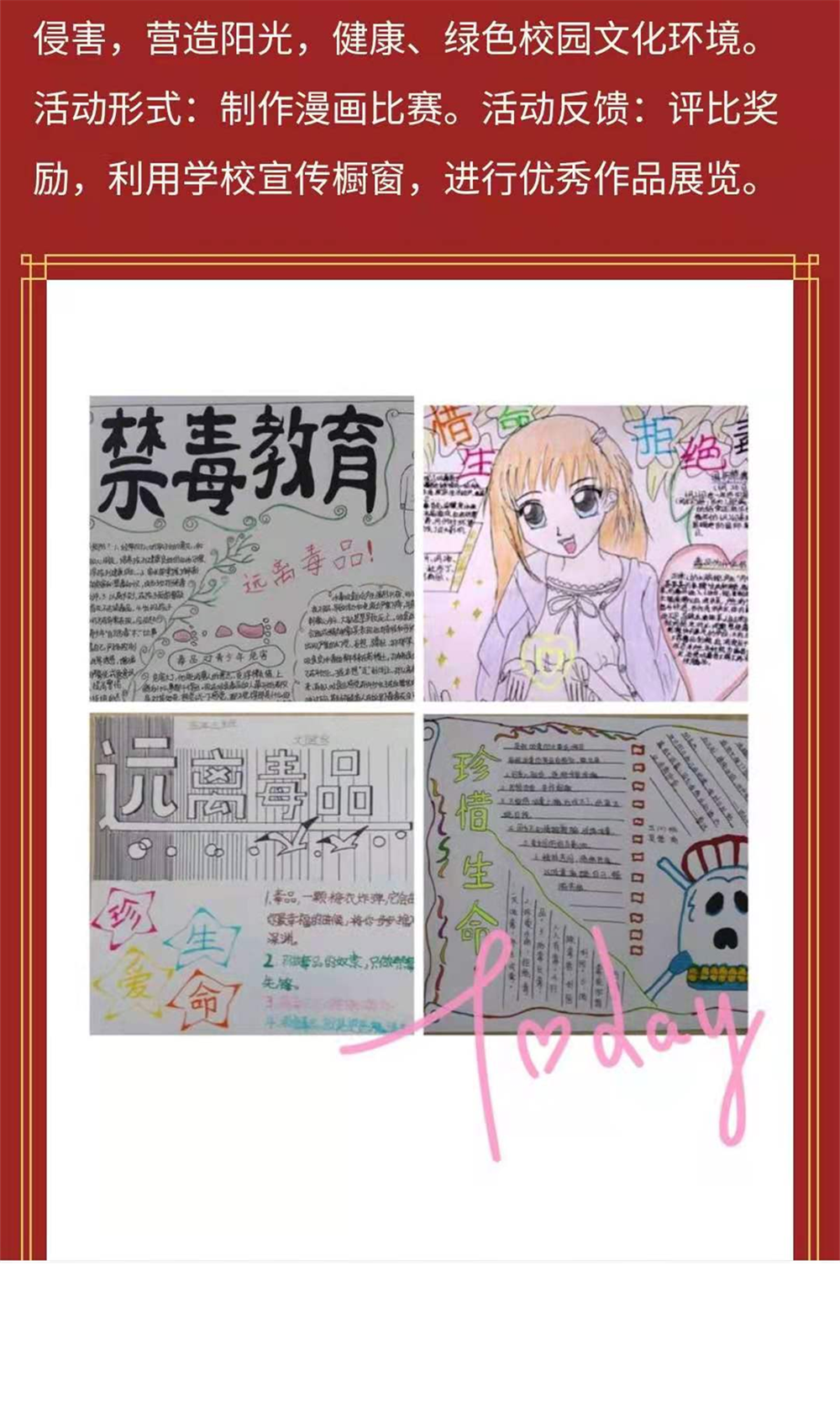 2021年清流县嵩溪中心小学通过开展倡议、大手牵小手、禁毒宣传片、参观网上禁毒宣传馆、漫画作品和志愿者活动等一系列“禁毒教育”宣传活动,让学生远离毒品。通过学校宣传电子屏幕、微信禁毒教育在学生当中广泛宣传毒品的危害性,帮助学生增强防毒、禁毒意识,自觉远离、抵制毒品侵扰,正确引导学生如何远离毒品、拒绝毒品有着重要意义。