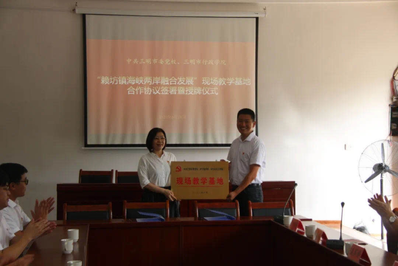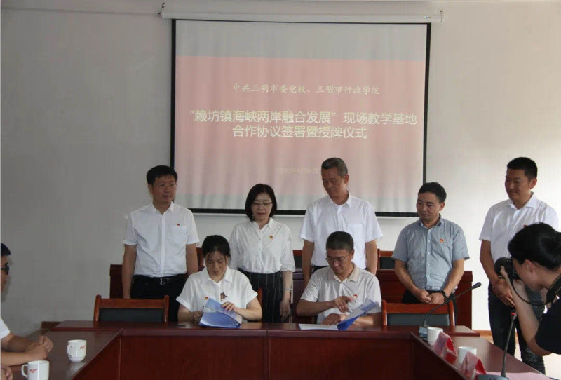 仪式上,市、县两级党校签署了《共建教学基地协议》;市委党校(市行政学院、市社会主义学院)副校(院)长陈沈慧向赖坊镇授予“海峡两岸融合发展”现场教学基地牌匾。