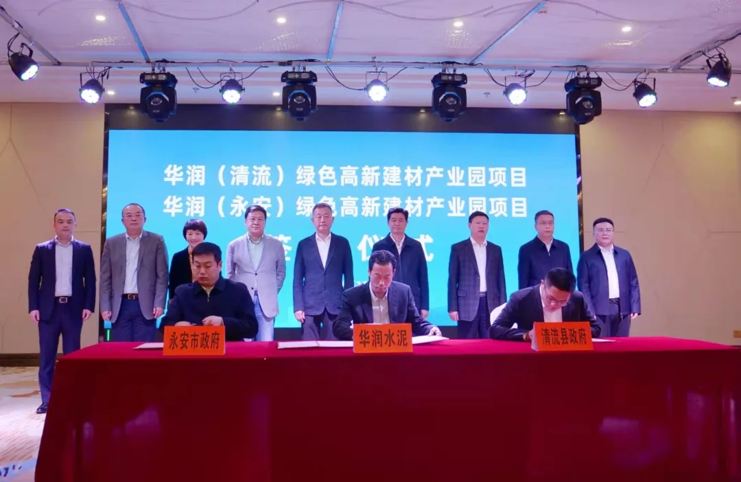 清流县、永安市与华润水泥控股有限公司签订计划总投资115亿元的《华润(清流)绿色高新建材产业园项目合作协议》《华润(永安)绿色高新建材产业园项目合作协议》。
