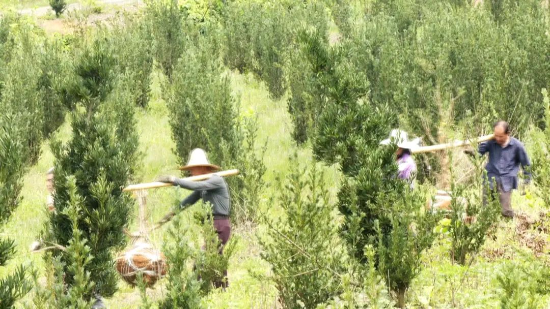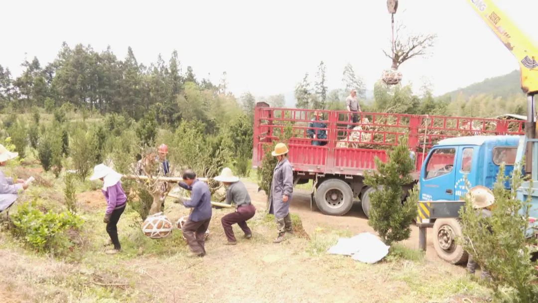 眼下,正是苗木移栽和销售的好季节。在田源乡永明园艺场,村民陈仁辉正和工友们默契配合,将基地里的一颗颗罗汉松苗、起苗、捆苗、搬苗、装车,忙得不可开交。