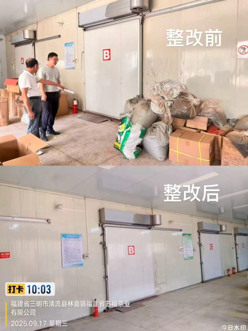 检查组深入福建省苏福茶叶有限公司等茶叶生产企业,重点对茶企安全出口是否通畅、灭火器压力是否完整、消防车是否可以启动、车间卫生是否整洁、安全生产记录是否完整、安全生产举报奖励机制以及举报奖励二维码是否上墙等方面进行安全检查,对发现的问题现场提出整改要求并明确时限。截至目前,共走访茶叶主体2家,发现并指导整改风险隐患1项,发放安全生产资料5份。
