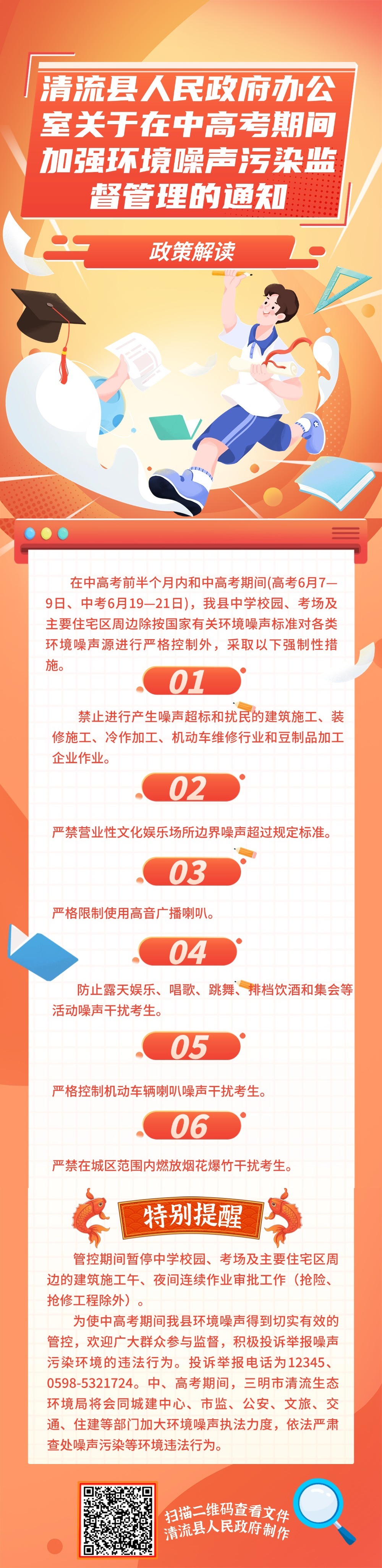 图解:《清流县人民政府办公室关于在中高考期间加强环境噪声污染监督管理的通知》
