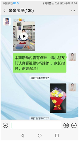 此次活动,图书馆指导老师通过微信群向小朋友介绍母亲节的由来,并将录制的花束制作视频上传,以线上视频教学的方式指导小朋友们学习制作花束。家长们则通过观看视频和远程交流等方式辅助小朋友完成花束的制作。在老师和家长的共同指导下,每个小朋友都顺利完成了作品制作,并亲手将礼物送给他们心目中最美丽、最亲切、最亲爱的妈妈。